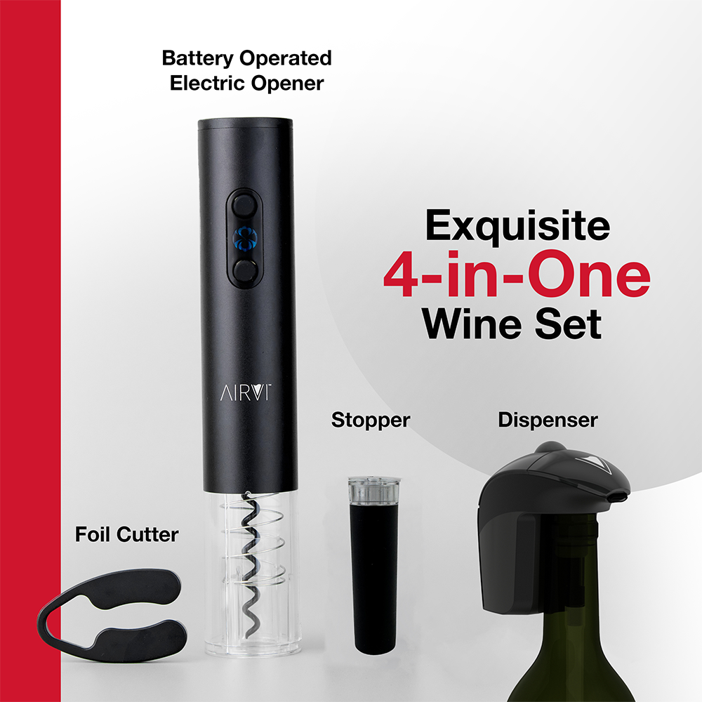 - Designed to easily open a bottle of wine in seconds with the simple touch of a button.