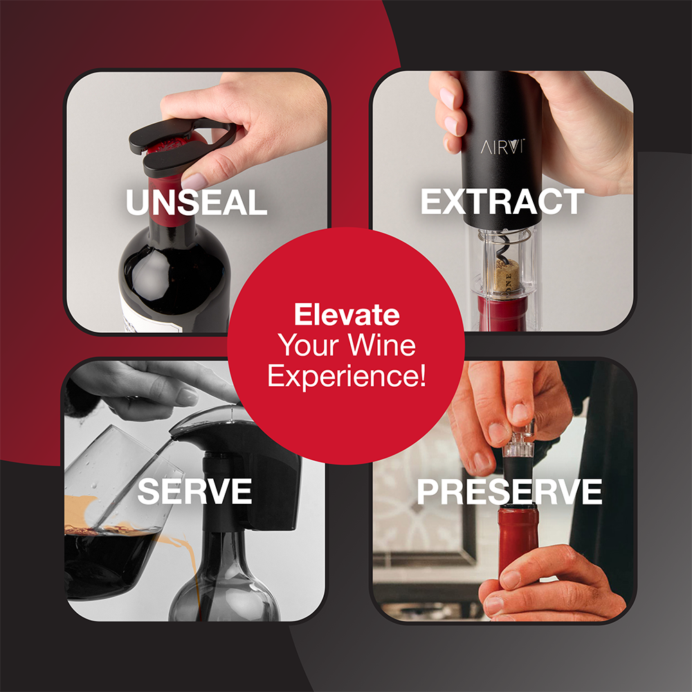 The Wine Opener Kit has everything you need to uncork, aerate, serve, and preserve your bottle of wine. Give the Wine Opener Kit as a gift or treat yourself to your own set!